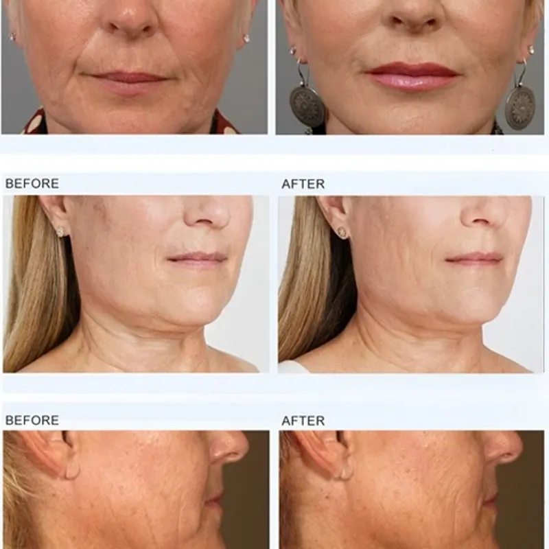 • پوست سفتتر و لیفتشدهتر در نواحی گونه، دور لب و خط فک