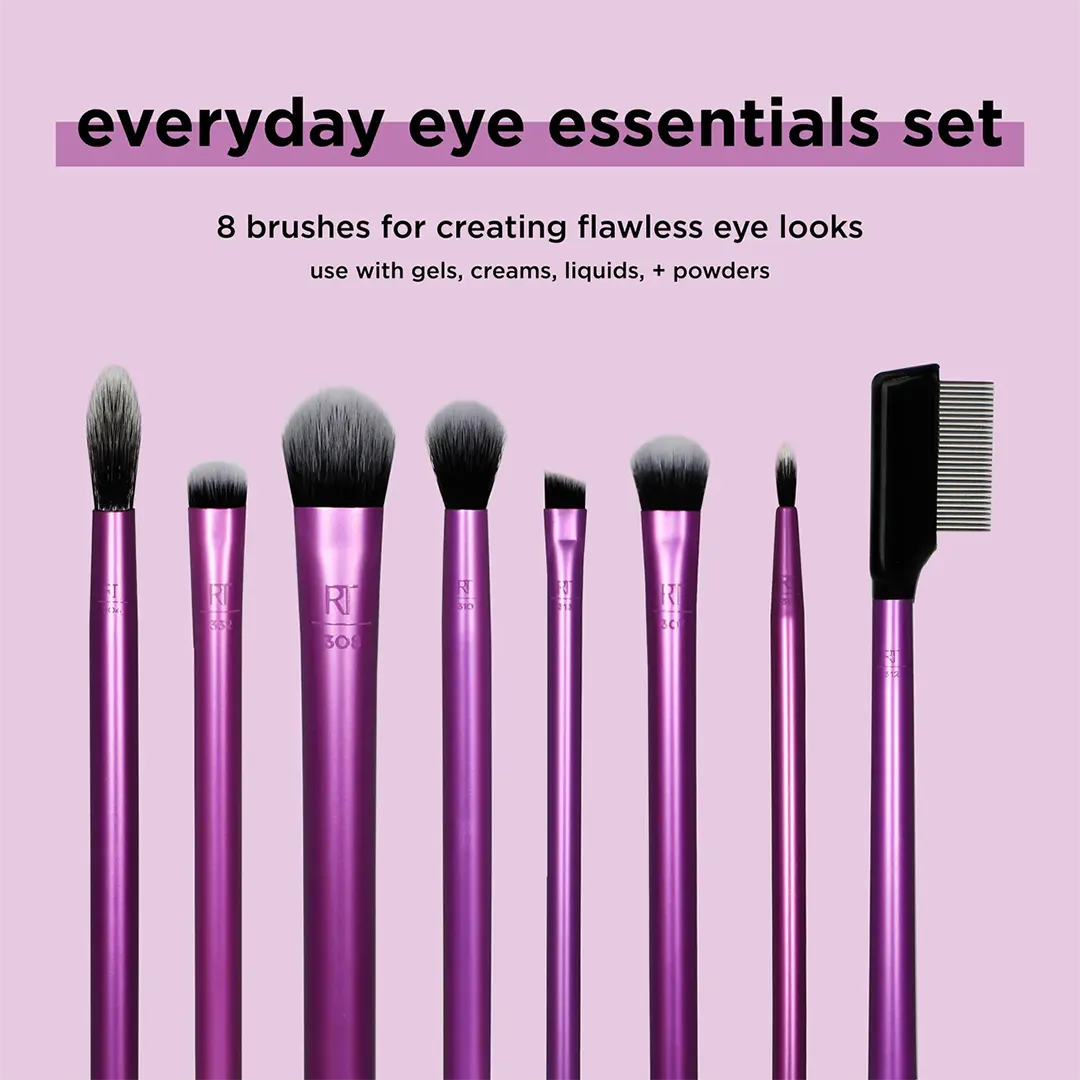 ست ۸ عددی براش آرایش چشم ریل تکنیک مدل Everyday Eye Essentials یک مجموعه کامل از براش های چشم می باشد و بانوان می توانند با کمک این ست، آرایش های مختلف چشم از اسموکی تا نچرال را تجربه کنند. تمام براش های موجود در این محصول از الیاف مصنوعی بسیار نرم و باکیفیت ساخته شده اند و پوست ظریف پلک را نمی خراشند. براش های موجود در این ست قابل شستشو بوده و به راحتی تمیز می شوند. این محصول وگان بوده و بدون استفاده از فرآورده های حیوانی تولید، عرضه و روانه بازار می گردد.