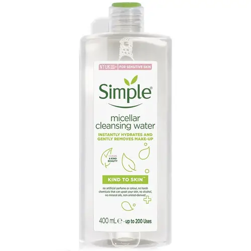 محصولات پاک کننده آرایش اغلب باعث خشکی پوست می شوند، در نتیجه متخصصان  کم کم آب را به گونه ای تغییر ساختار دادند که توانایی پاک کردن آرایش، عرق، چربی و آلودگی را بدون نیاز به شستشو فراهم آورد. میسلار واتر در نهایت توانسته جایگاه بسیار ویژه ای بین محصولات مراقبت از پوست به خود اختصاص بدهد. پاک کننده میسلار واتر سیمپل مناسب انواع پوست با حجم 400 میلی لیتری دارای خاصیت ضد جوش و ضد حساسیت می باشد. این محصول برای انواع پوست مناسب است.میسلار واتر سیمپل رطوبت پوست را تا 90 درصد حفظ کرده و پوست شمارا را آبرسانی خواهد کرد. در ترکیبات میسلار واتر پوست حساس سیمپل از آب سه بار تصفیه‎‌شده استفاده شده است  که احتمال تحریک پوست را تا حد زیادی کاهش می‌‏دهد. این فیلتراسیون سه‏‌گانه، آلودگی و مواد معدنی سخت آب را تا حد امکان حذف کرده و باعث لطافت پوست می‌‏شود. وجود ویتامین B3 و ویتامین C خواص آنتی‌‏اکسیدانی ویژه‌‏ای به این میسلار واتر سیمپل می‌‏دهد و علاوه‌‏بر از بین بردن لکه‌‏های پوست، باعث آبرسانی به پوست نیز می‏‌شود و آن را نرم و احیا و شاداب می‌‏کند.