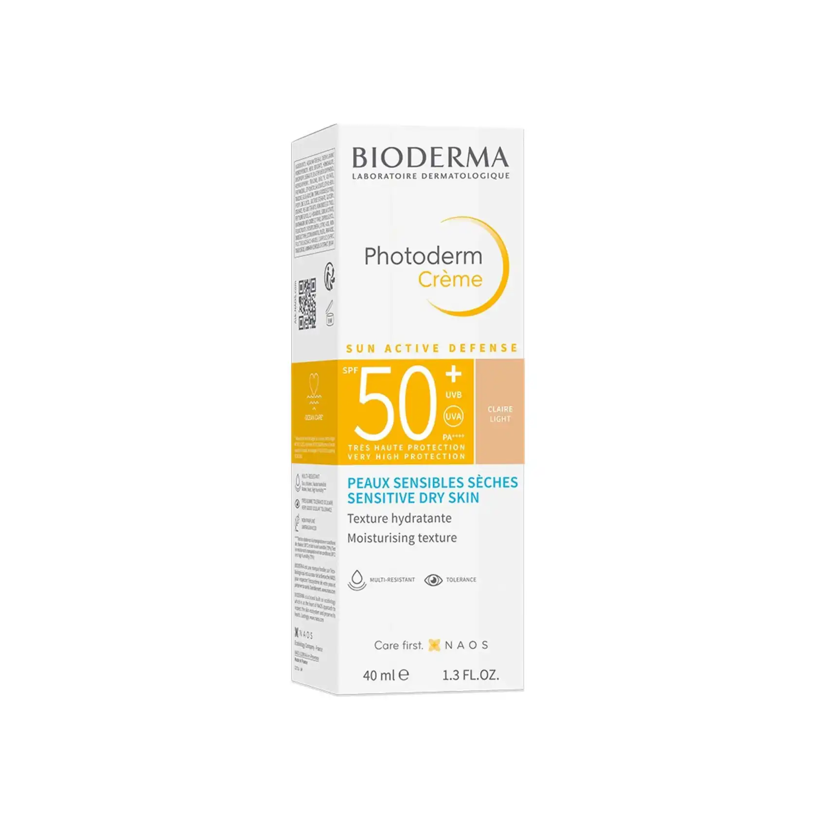 SPF 50+ با فیلترهای UVA/UVB و PA++++: محافظت قوی در برابر آفتابسوختگی و پیری زودرس Sun Active Defense: کمک به تقویت سد دفاعی طبیعی پوست در برابر نور خورشید مخصوص پوستهای حساس و خشک: فرمولاسیون ملایم و آبرسان برای جلوگیری از خشکی بافت مرطوبکننده (Moisturising Texture): حفظ رطوبت پوست و جلوگیری از احساس کشیدگی رنگ لایت (Clair Light): پوششی ملایم و طبیعی برای یکدست شدن رنگ پوست فاقد چربی سنگین و غیر کومدونزا: از مسدود شدن منافذ جلوگیری کرده و باعث جوش نمیشود مقاوم در برابر آب: برای استفاده روزمره یا فعالیتهای بیرون از منزل مناسب است حجم ۴۰ میلیلیتر
