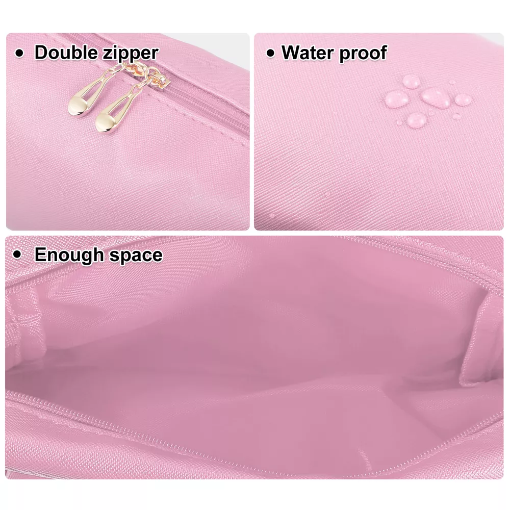 سبک و جمعوجور: مناسب برای قرار دادن در کیف دستی یا سفر. طراحی زیبا و شیک: رنگ صورتی ملایم با زیپهای طلایی. ظرفیت مناسب: فضای کافی برای لوازم آرایش ضروری. جنس مقاوم و باکیفیت: ضدآب یا مقاوم در برابر لکه (در صورت استفاده از چنین موادی). استفاده چندمنظوره: مناسب برای نگهداری از محصولات آرایشی، بهداشتی یا اکسسوریهای کوچک.